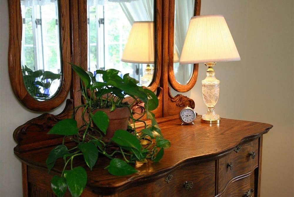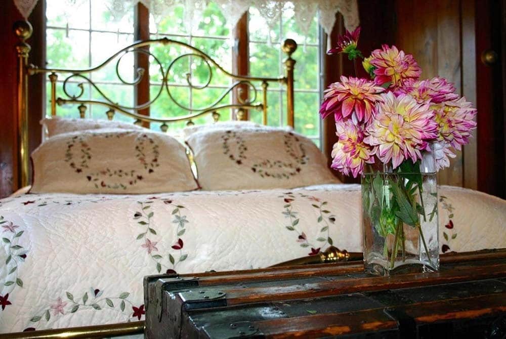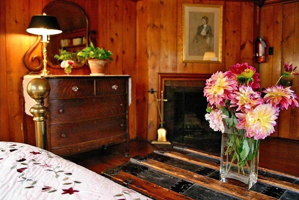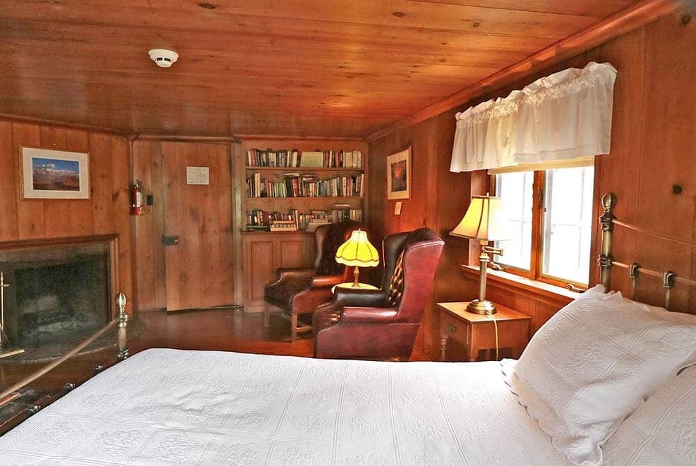 The Pine Room features a queen-size bed, a private bathroom and a fireplace to take the chill off on those cool evenings. It is on the main level, on the southeast side of the house with views of the mountains and fields.