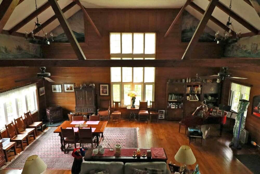 The Yellow Room is a bright room on the southwest side of the house, upstairs off the balcony overlooking the Great Room. It has a queen-size bed, private bathroom, and views of the mountains and fields.